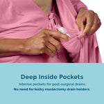 - Internal pockets for post-surgical drain management (no need for bulky mastectomy drain holders). Don't need drain holders? With exterior access to the pockets as well, you can hold personal belongings like keys, phone, lip balm and more