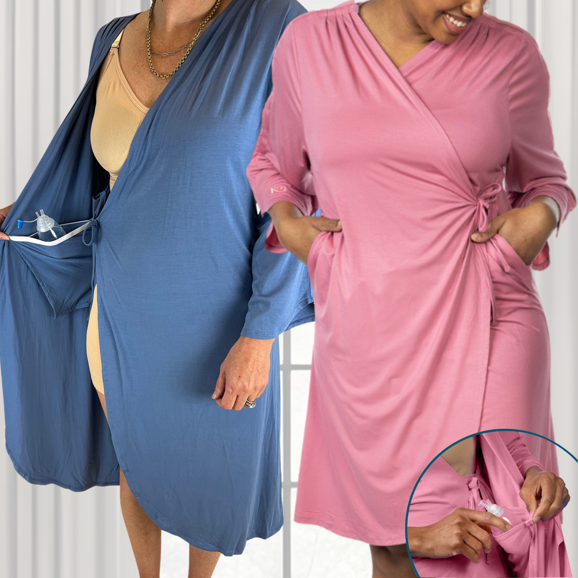 Our Recovery Robes with Interior Drain Pockets is a good choice for women recovering post surgery at home or in a rehab center, Made of moisture-wicking fabric that is breathable and soft, these are ideal for after breast surgery, post mastectomy, hysterectomy or any surgery that requires drainage bulbs.