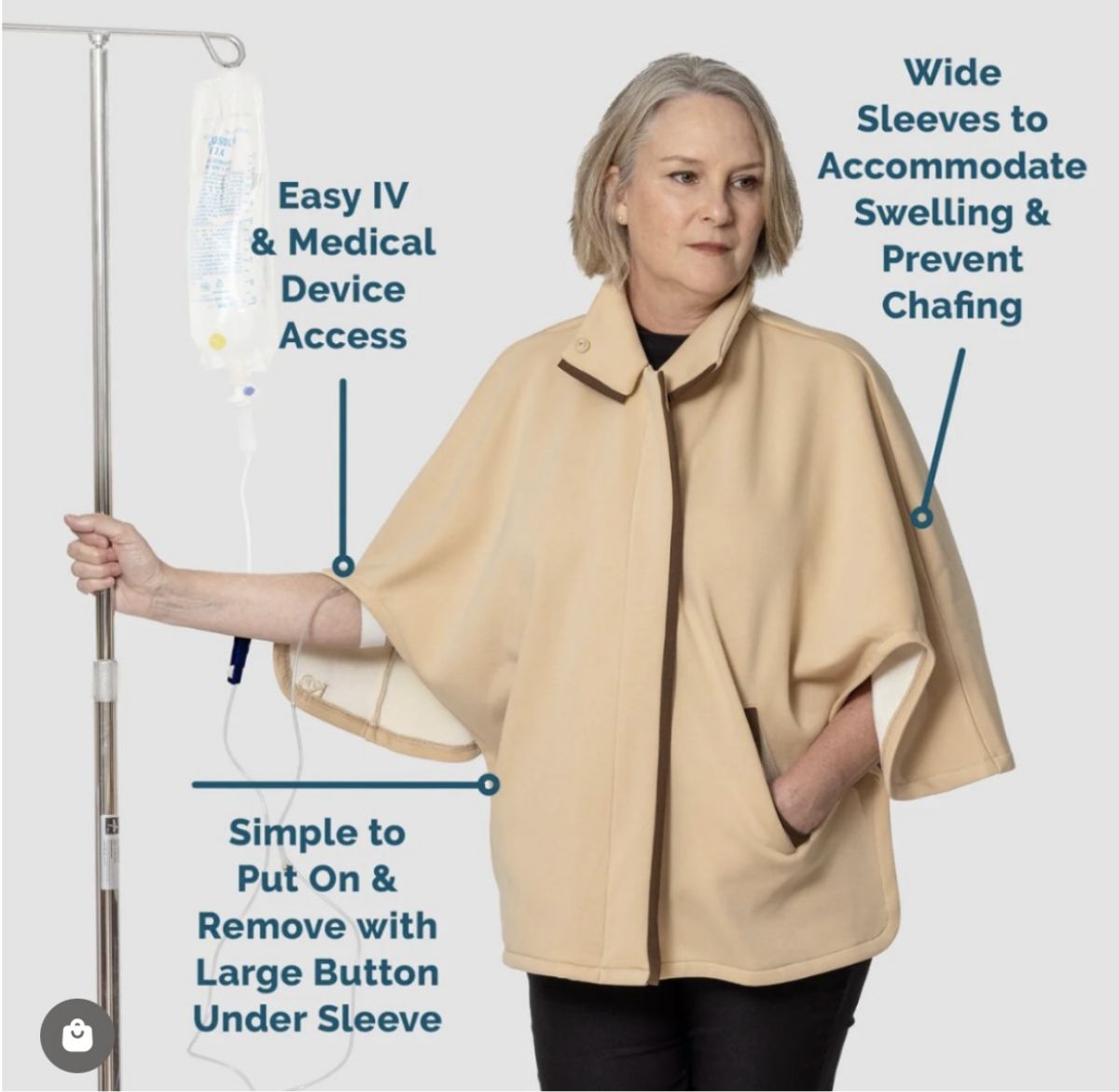 Our KickIt Cape is made for warmth, style, and function while getting treatments, in the hospital, or recovering at home.