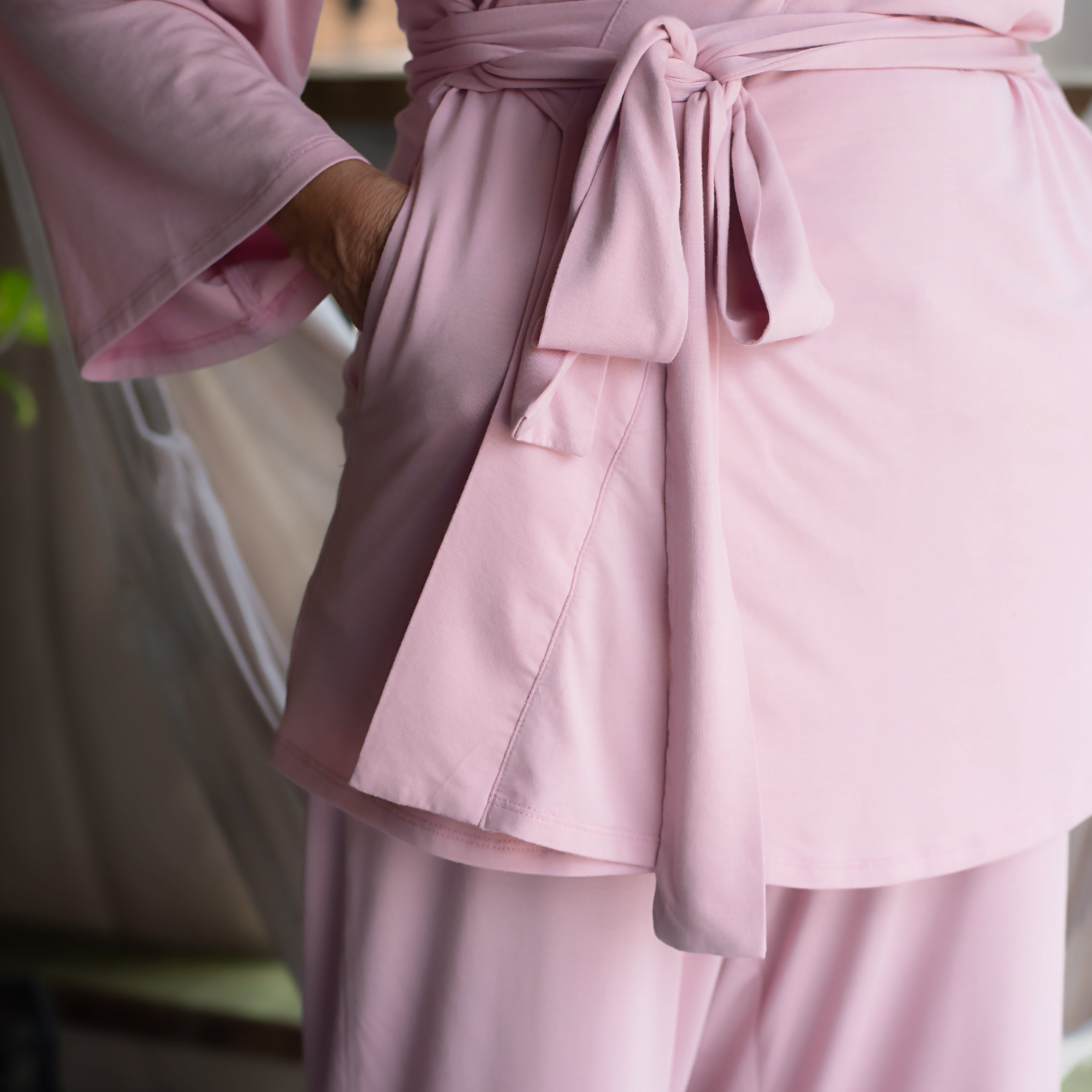 Gentle and practical details, such as internal pockets to hold drainage bulbs and loose flutter sleeves that allow for easy access to PICCs and IVs, help you feel cared for while looking put together. Paired with soft yoga-style pants, this set moves with you and provides ease no matter what sensitivities or healing needs you have.
